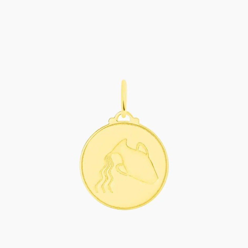 Pendentif Or Jaune 375/1000 Medaille Ronde Motif Verseau