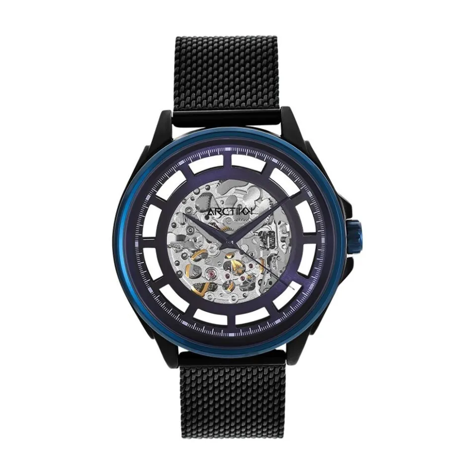 Montre Arctik Solstice Acier Noir Ronde Automatique 42.8mm Squelette Bleu Bracelet Milanais Acier Noir P101032-c