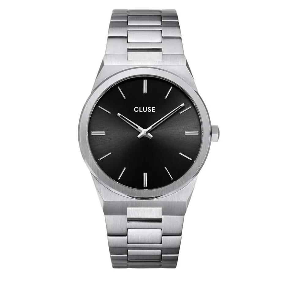 Montre Cluse Vigoureux0 Acier Blanc Ronde Quartz 40mm Fond Noir Bracelet Acier Blanc Cw0101503004