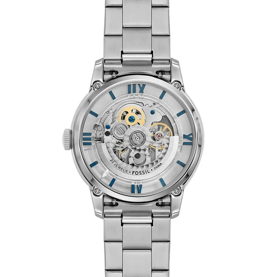 Montre Fossil Townsman Acier Argenté Ronde Automatique 44mm Fond Bleu Bracelet Acier Argenté Me3260