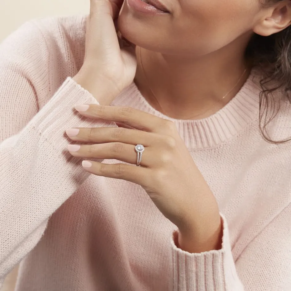 Solitaire Argent Blanc 925/1000 Oxyde De Zirconium Accompagne Oxydes De Zirconium