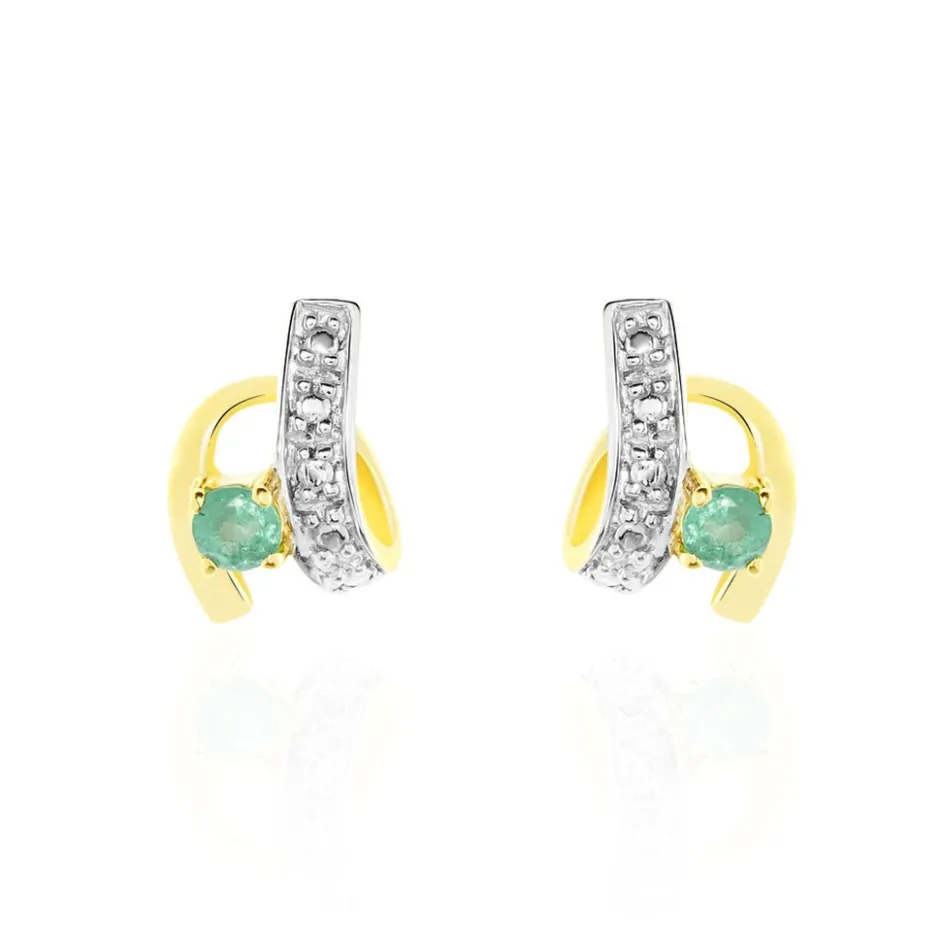 Boucles D’oreilles Or Jaune 375/1000 Formes Vagues Emeraudes
