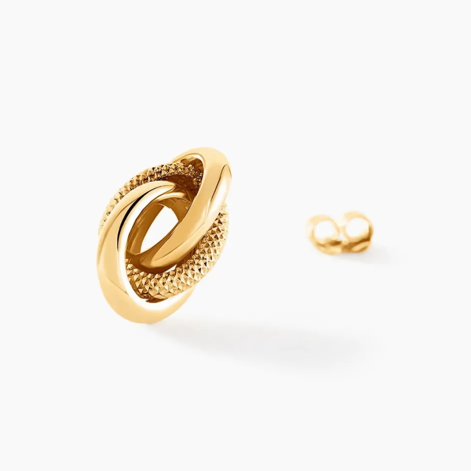 Boucles D’oreilles Puces Or Jaune 750/1000 Nid Effet Diamante Longueur 17.6mm Largeur 10.5mm