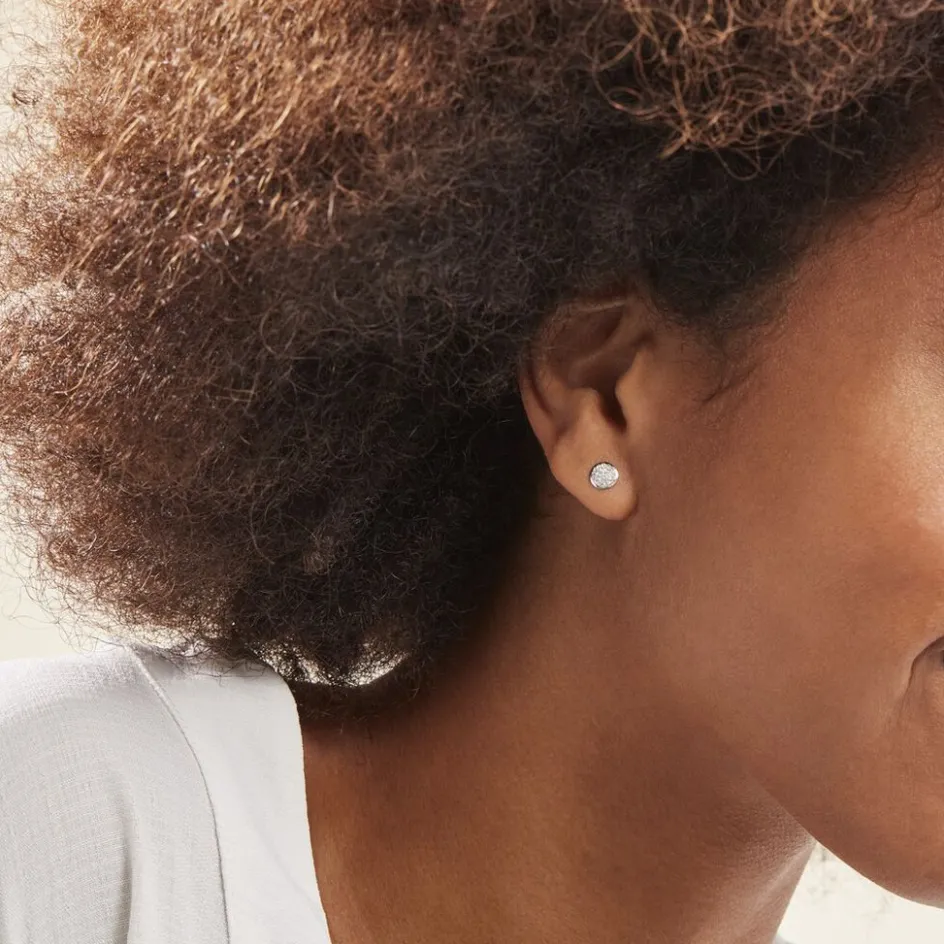 Boucles D’oreilles Puces Or Blanc 375/1000 Cercles Strass
