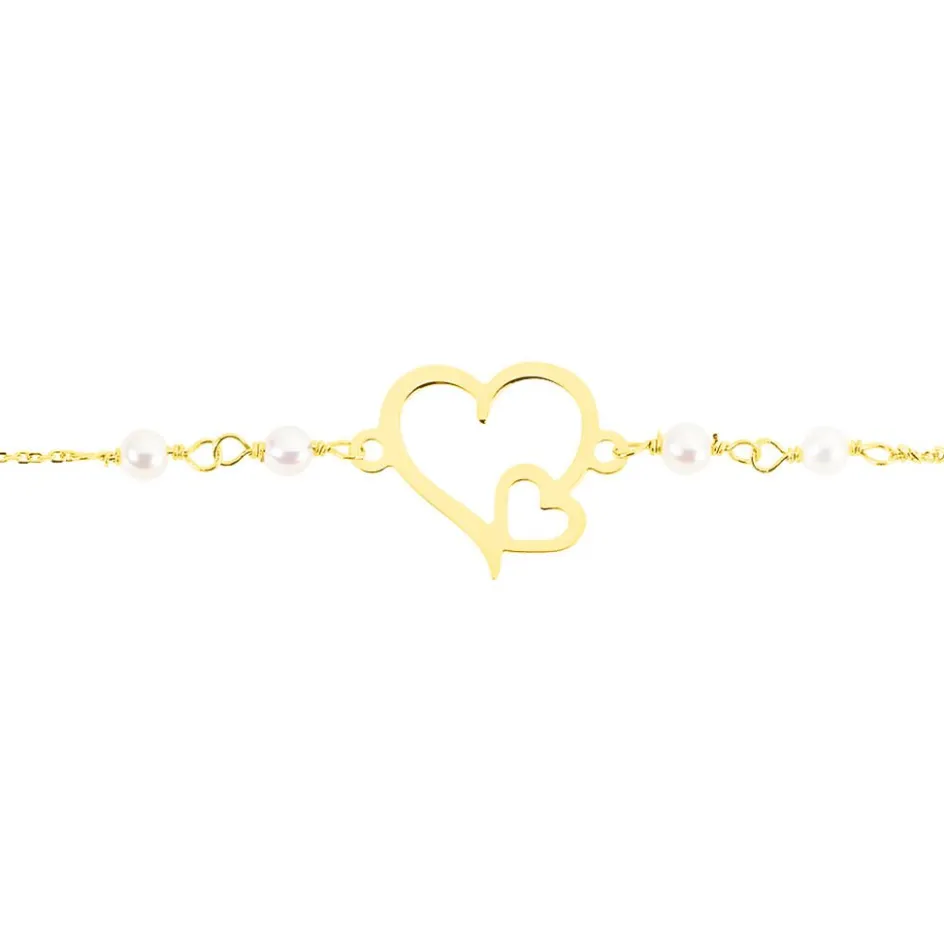 Bracelet Or Jaune 375/1000 C艙ur Et Perles De Culture 18cm