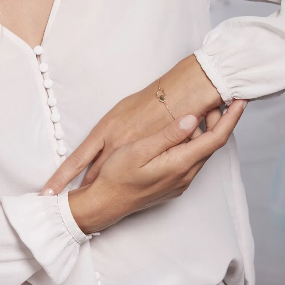 Bracelet Plaqué Or Jaune Maille Coeurs Doubles Maille Forcat 18cm