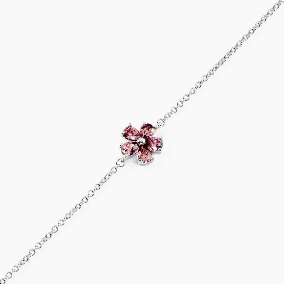 Bracelet Argent Blanc 925/1000 Fleur Pierre D’imitation Rouge Maille Jaseron 16+2cm
