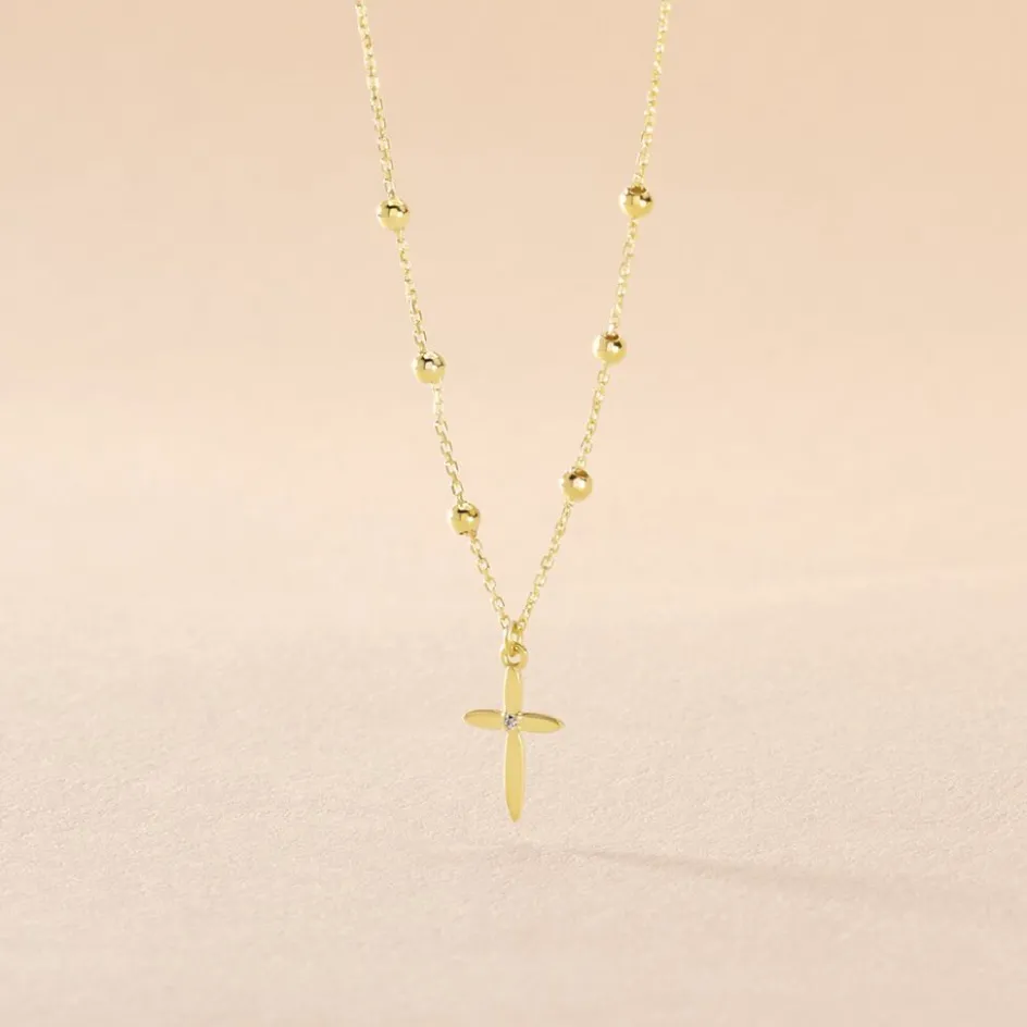Collier Or Jaune 375/1000 Motif Croix Maille Jaseron 40/42cm