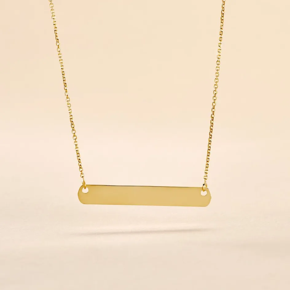 Collier Or Jaune 375/1000 Plaque Rectangle Gravable Maille Jaseron 42cm