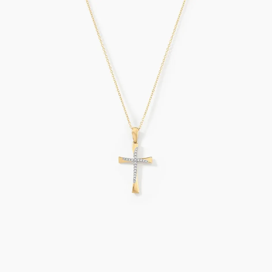 Collier Or Jaune 375/1000 Motif Croix Diamants 42cm