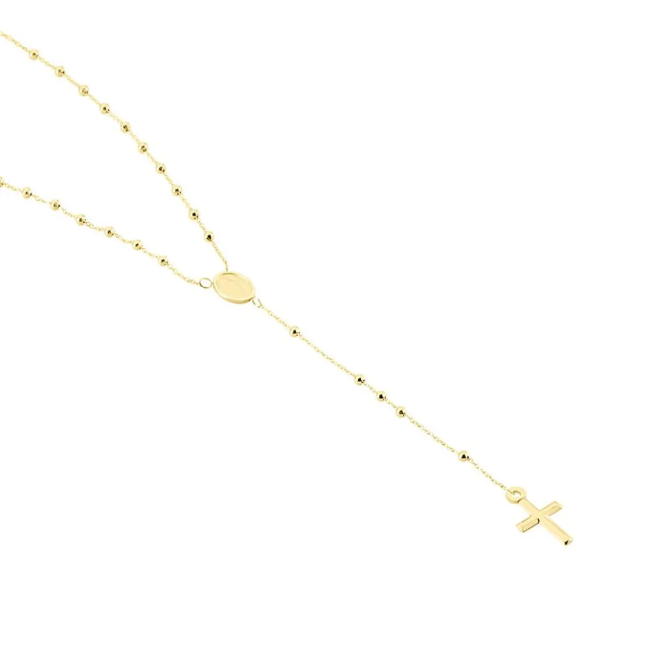 Collier Or Jaune 750/1000 Chapelet Croix Forme Cravate Maille Boule 46.5cm