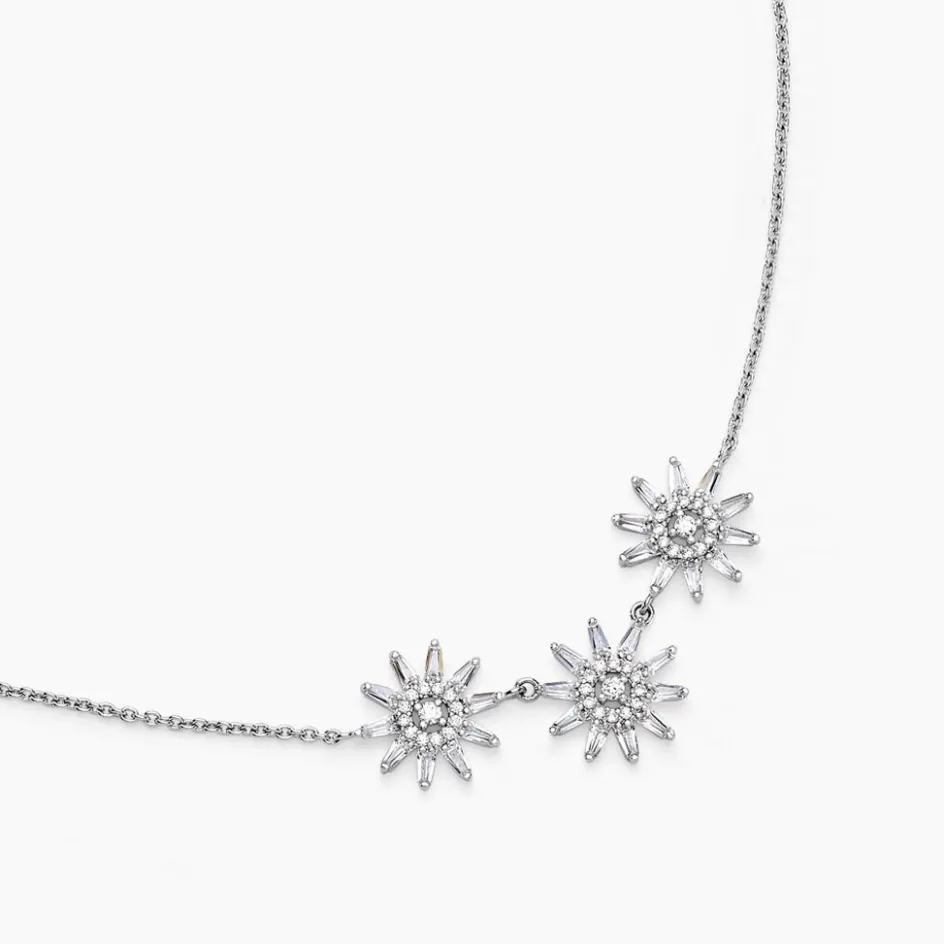 Collier Argent Blanc 925/1000 Triple Fleur Pavage Oxydes De Zirconium Maille Forçat 42+3cm