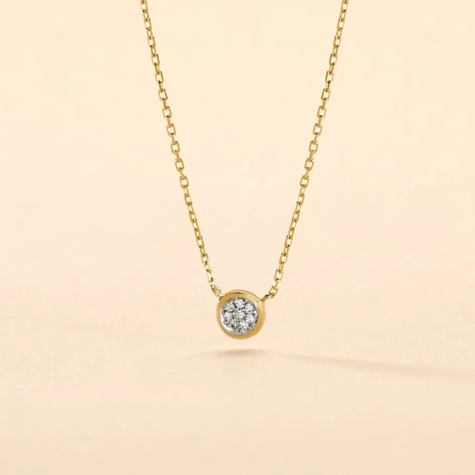 Collier Or Jaune 375/1000 Pastille Pavage Diamants 0.018cts 42cm