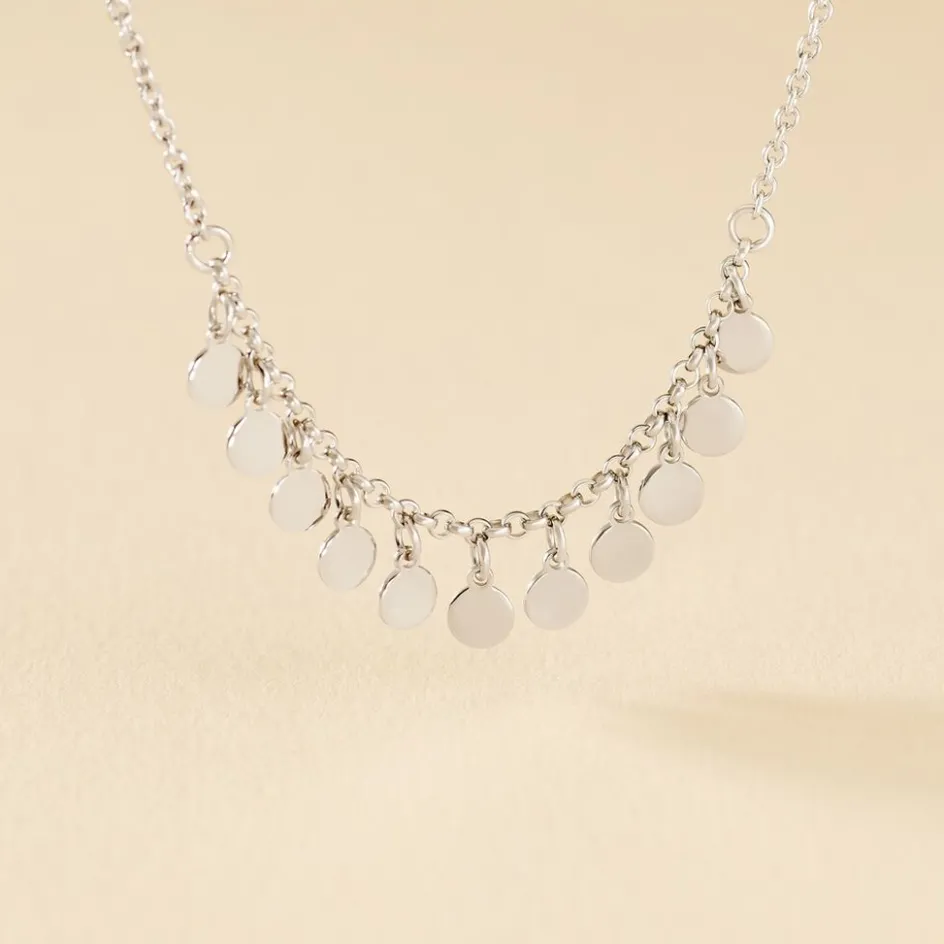 Collier Argent Blanc 925/1000 Pampilles Pastilles Maille Forcat 42cm
