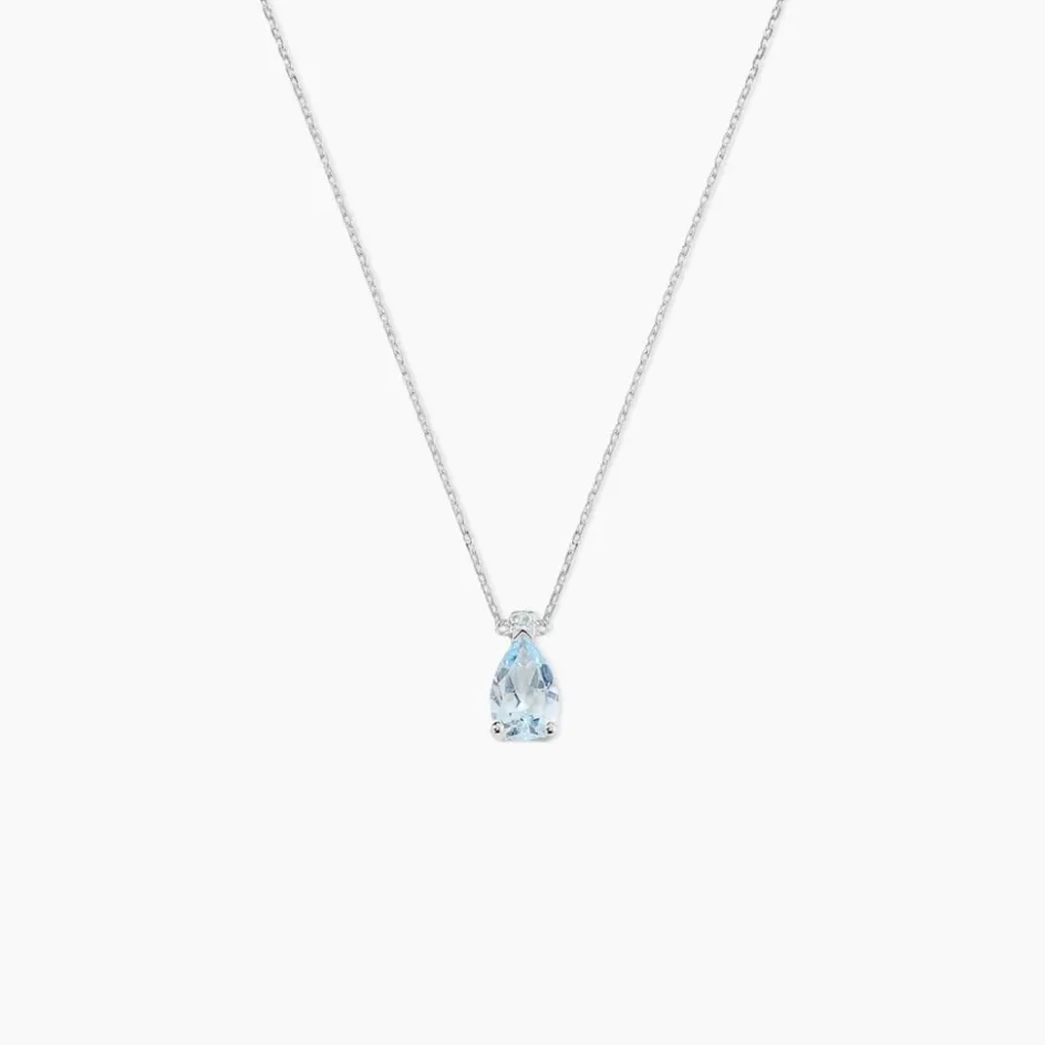 Collier Or Blanc 375/1000 Maille Forçat Topaze Bleue Poire Serti Griffes 40cm