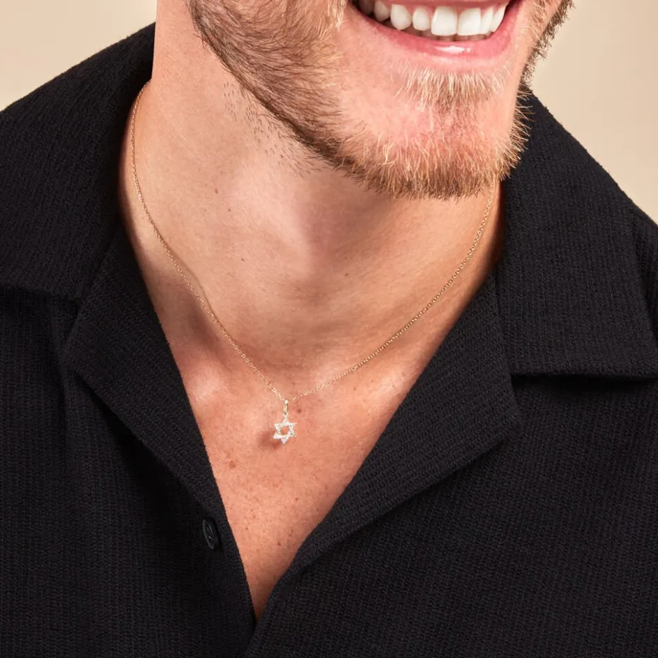 Pendentif Or Jaune 375/1000 Etoile De David Oxydes De Zirconium Serti Griffes Longueur 1.6cm