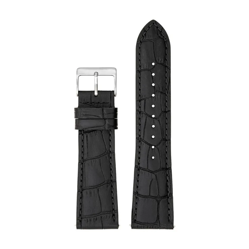 Bracelet De Montre Tekday Cuir De Vache Noir Effet Croco Boucle Argenté Largeur 24mm 675860