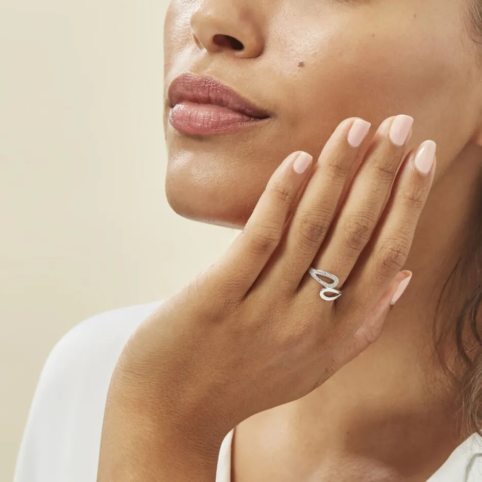 Bague Argent Blanc 925/1000 Entrelace Semi Pavage Oxydes De Zirconium