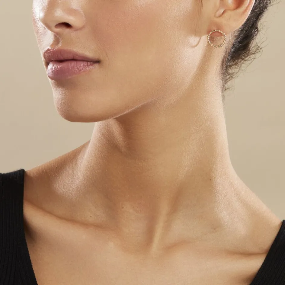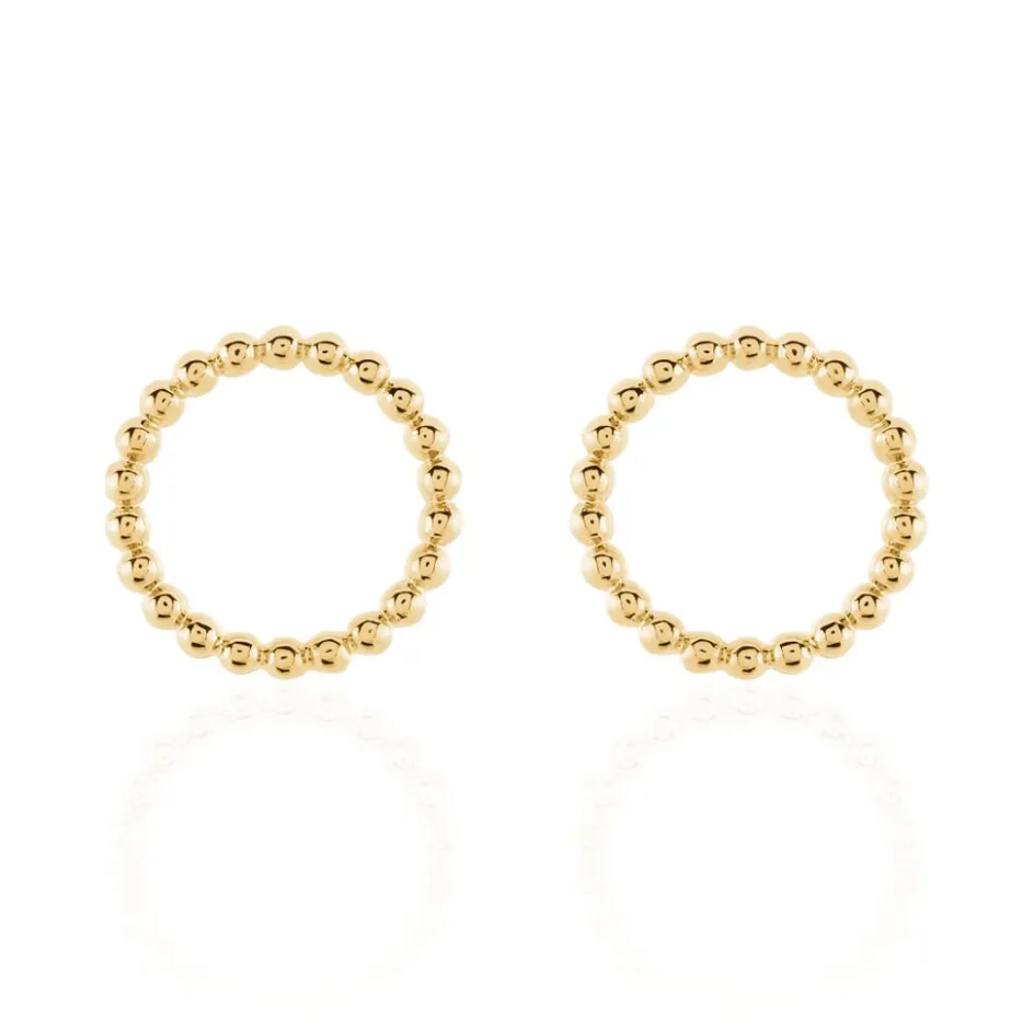 Boucles D’oreilles Puces Plaqué Or Jaune Formes Cercles Ajoures Effet Perlé