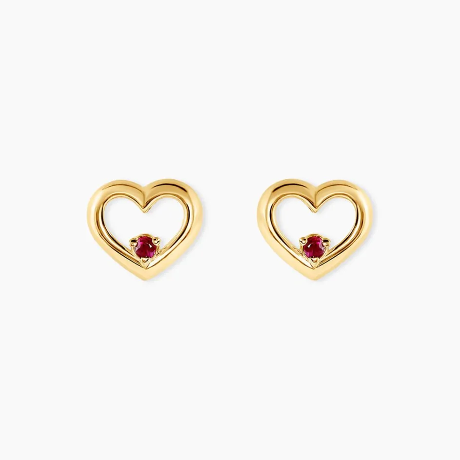 Boucles D’oreilles Or Jaune 375/1000 C艙urs Et Rubis