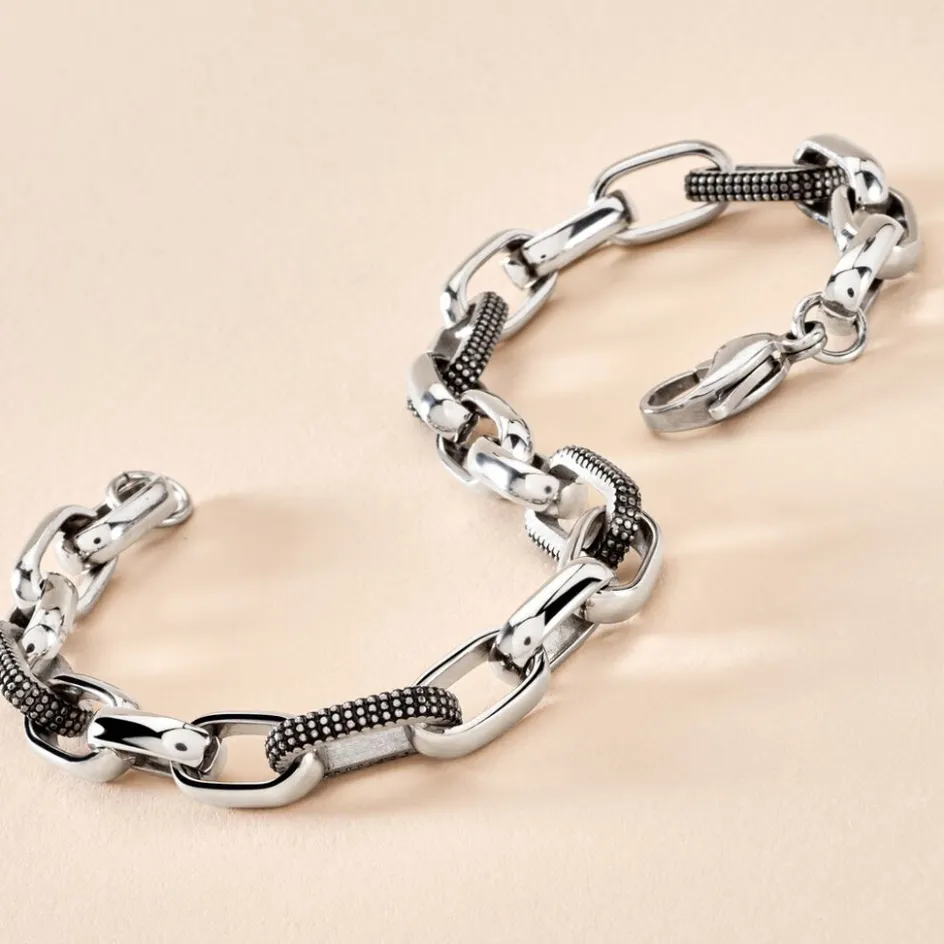Bracelet Acier Blanc Maille Fantaisie Largeur 8mm 22.5cm