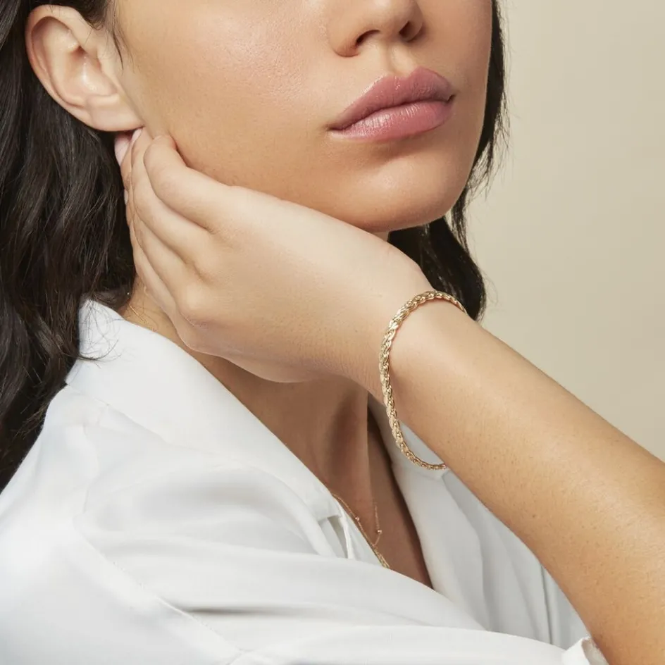 Bracelet Or Jaune 375/1000 Maille Palmier Ecrase 4.5mm 18cm