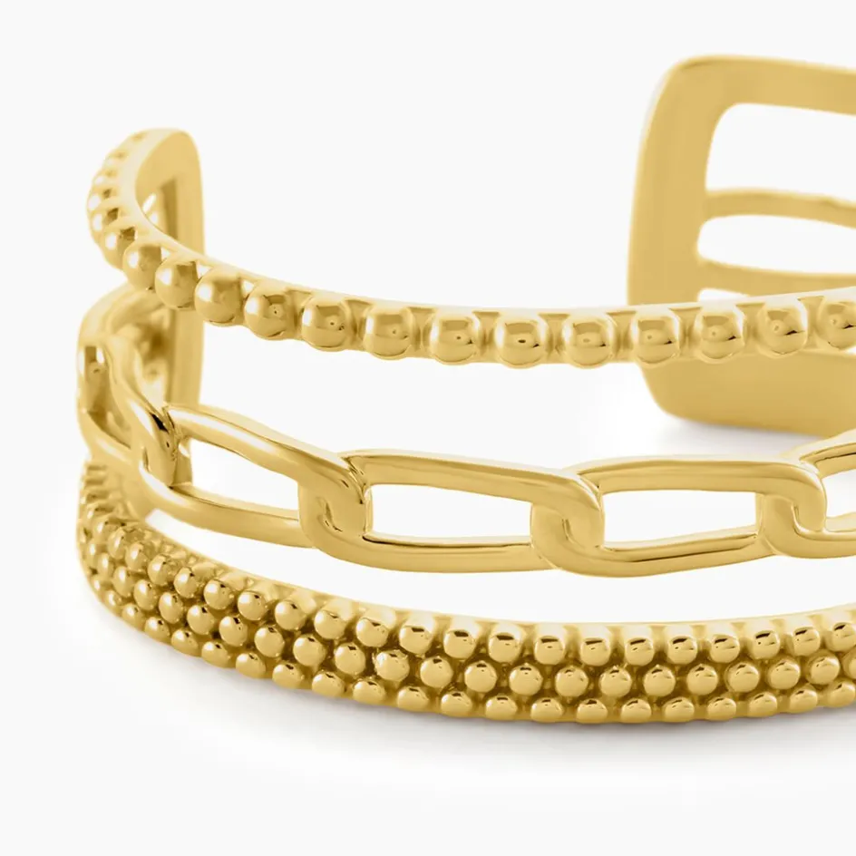 Bracelet Manchette Acier Inoxydable Jaune Effet Perle Et Maillons Diametre 60mm