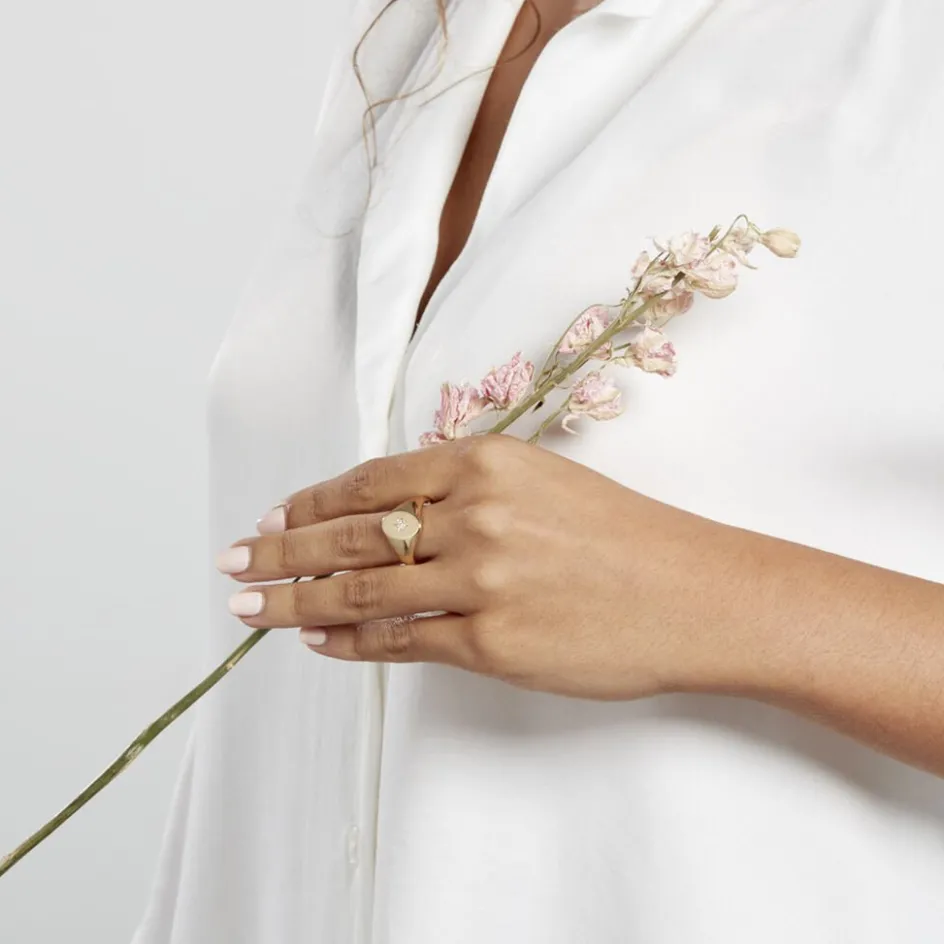 Chevaliere Plaque Or Jaune Plateau Ovale Motif Etoile Oxyde De Zirconium