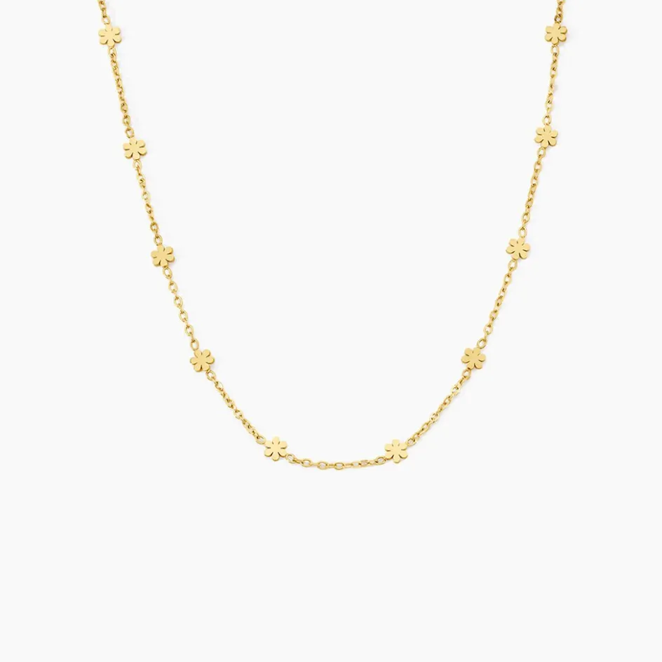 Collier Acier Inoxydable Jaune Motif Fleurs Maille Forçat Longueur Longueur 42+5cm