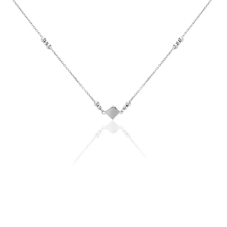 Collier Argent Blanc 925/1000 Losange Et Boules Maille Forcat 45cm
