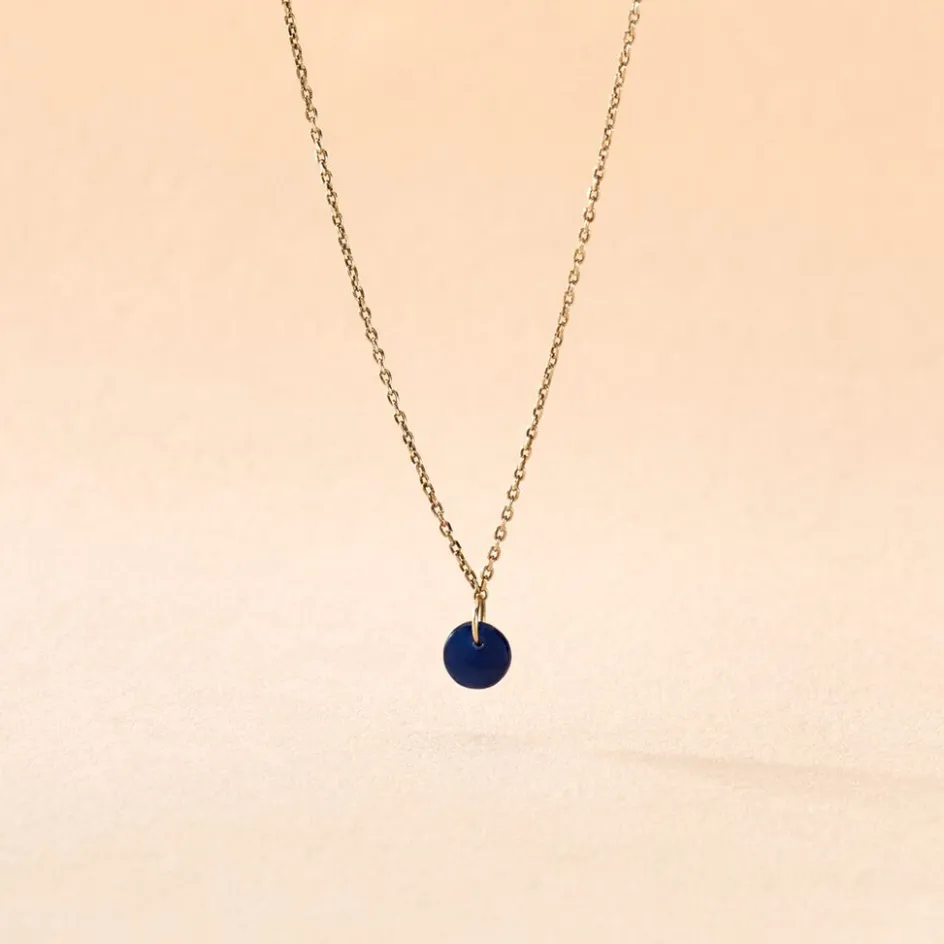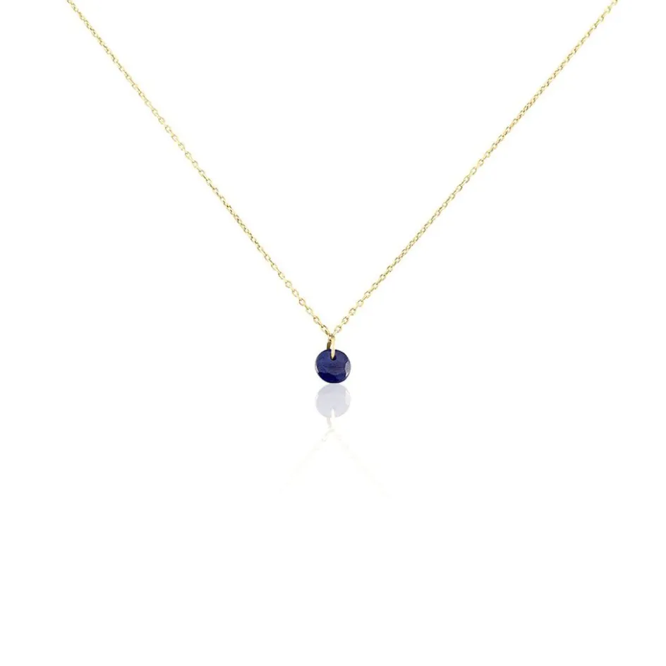 Collier Or Jaune 375/1000 Saphir Rond 0.6 Cts Serti Percé Maille Forçat 42cm