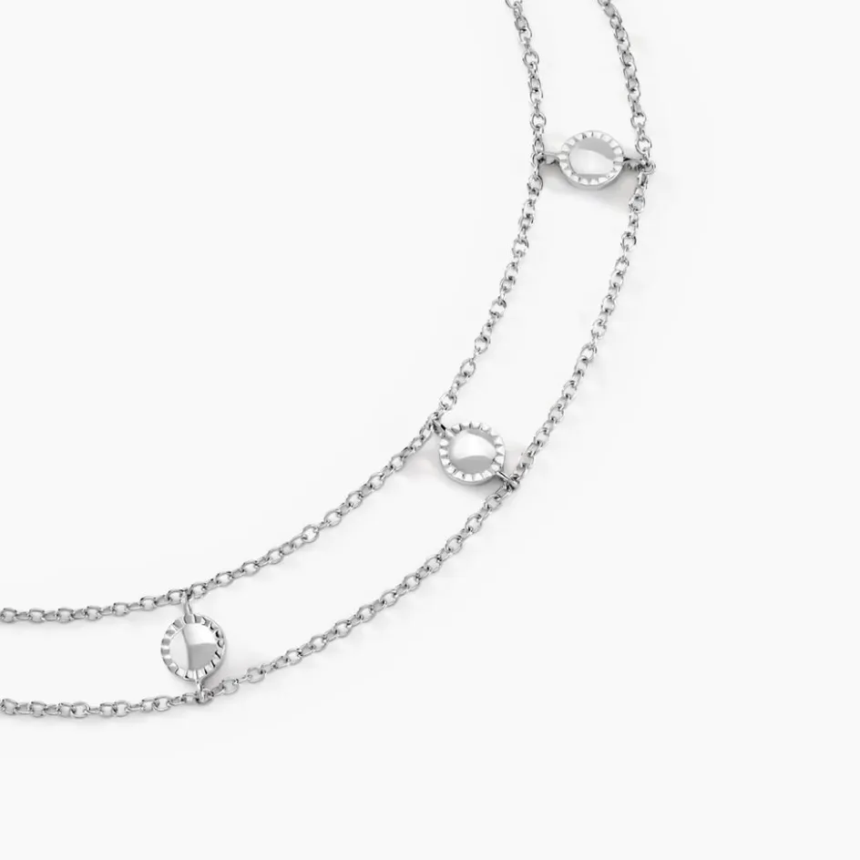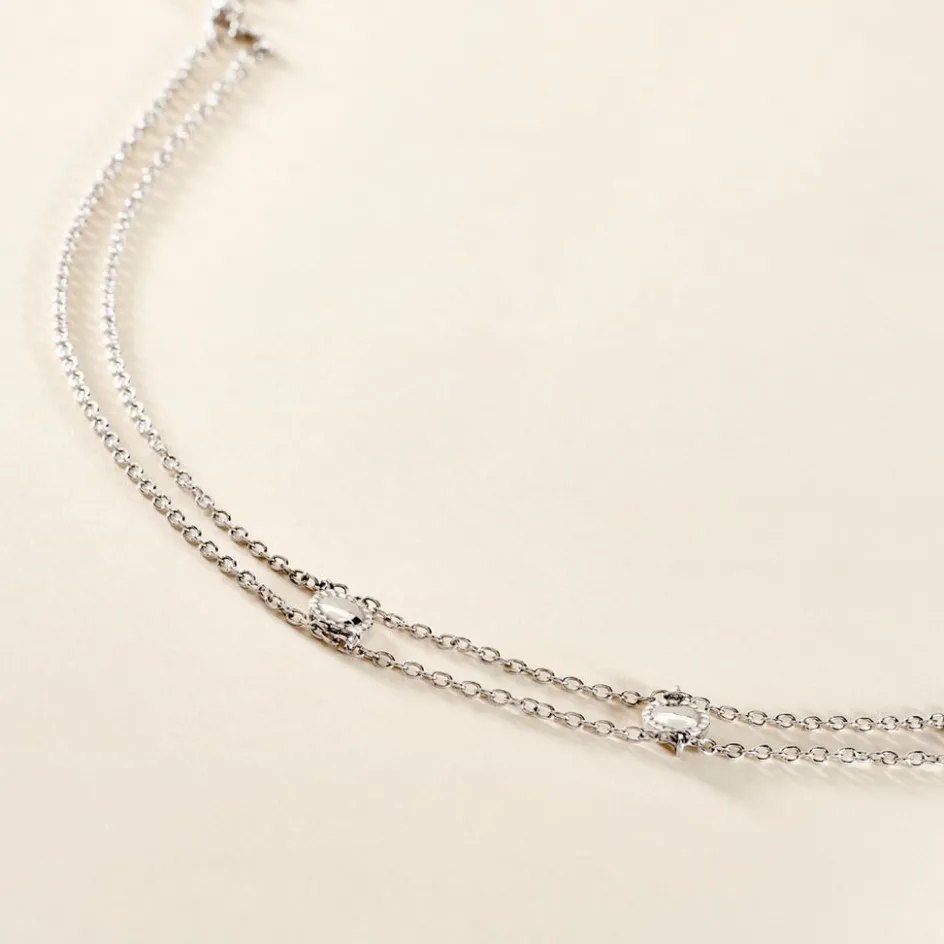 Collier Chocker Argent Blanc 925/1000 Pastilles Effet Perle Double Mailles Forcat 36cm