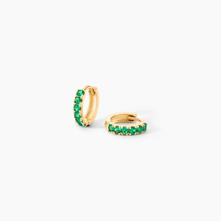 Créoles Or Jaune 375/1000 Pavage Oxydes De Zirconium Vertes Diametre 7Mm