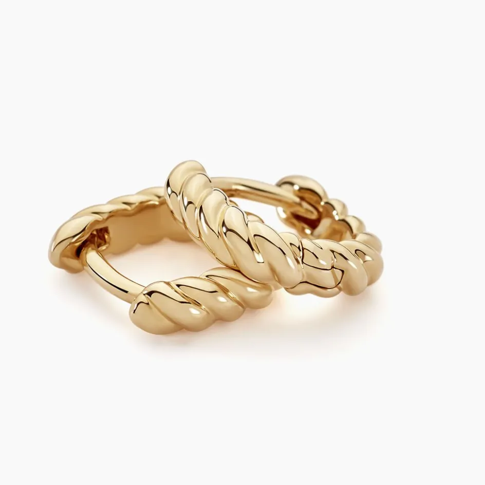 Créoles Plaqué Or Jaune Carrées Effet Torsadé Diamètre 10mm