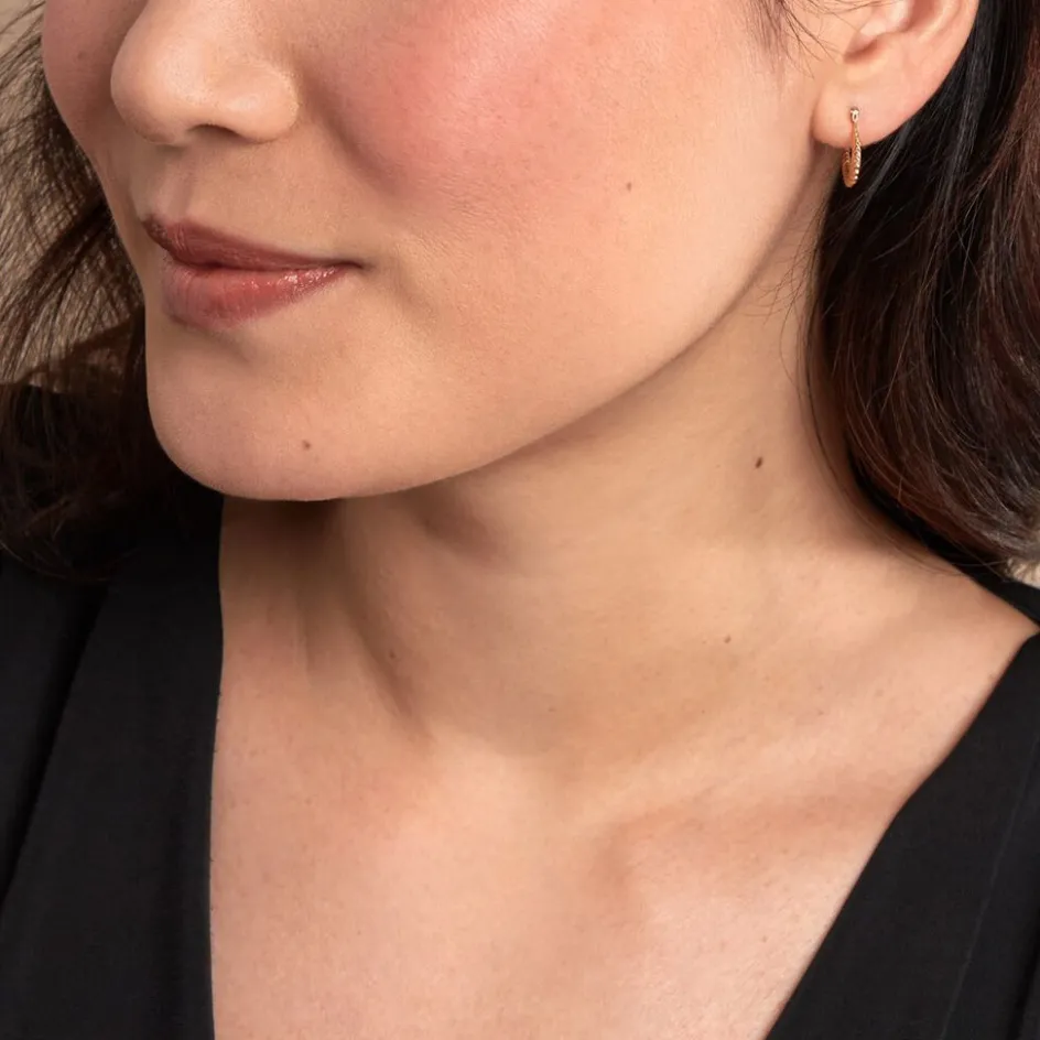 Creoles Or Jaune 375/1000 Fil Triangle Ovale Motif Laurier Longueur 14mm Largeur 12mm