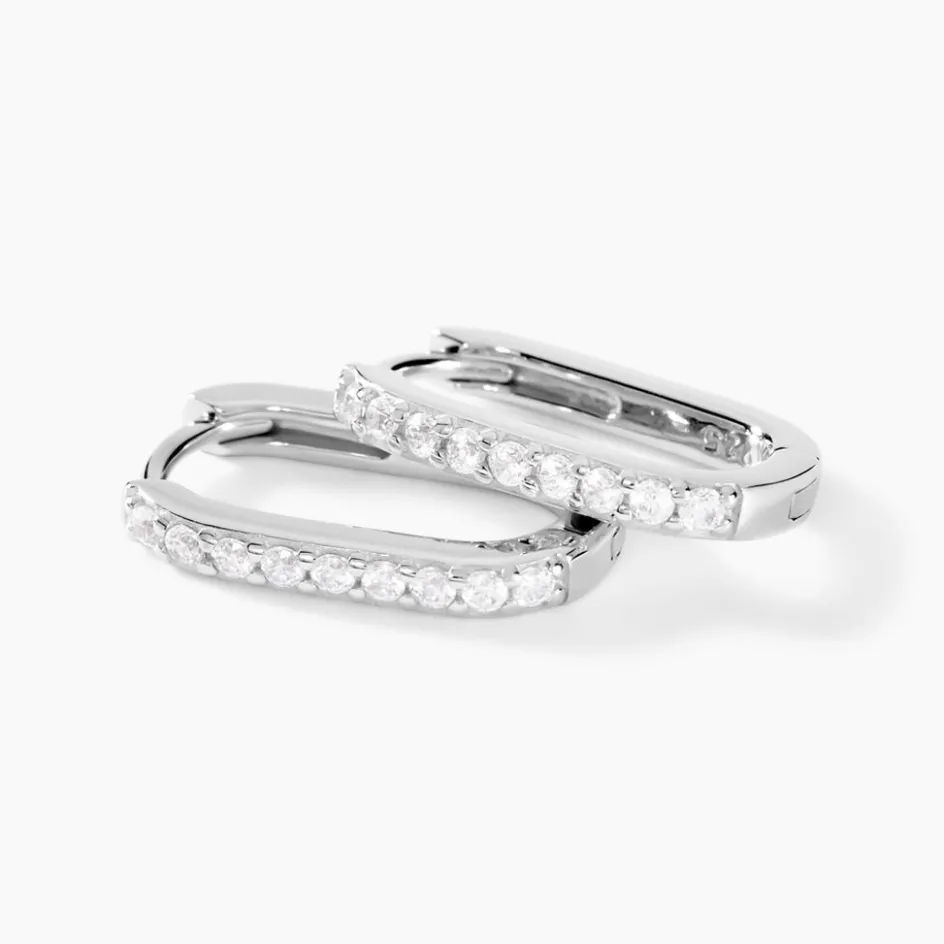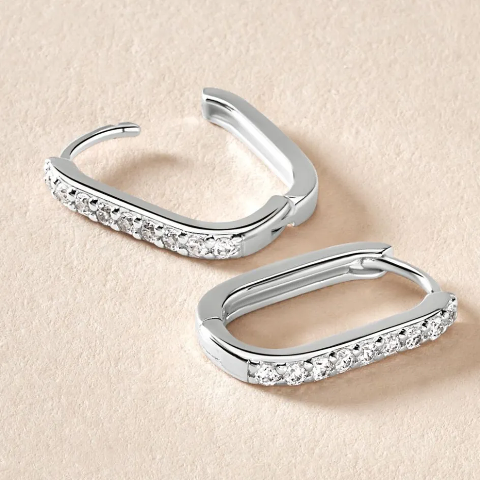 Creoles Argent 925/1000 Ovales Pavage Oxydes De Zirconium Diametre 16x12mm