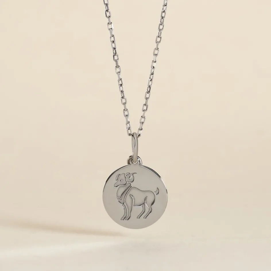 Pendentif Argent Blanc 925/1000 Medaille Ronde Motif Belier
