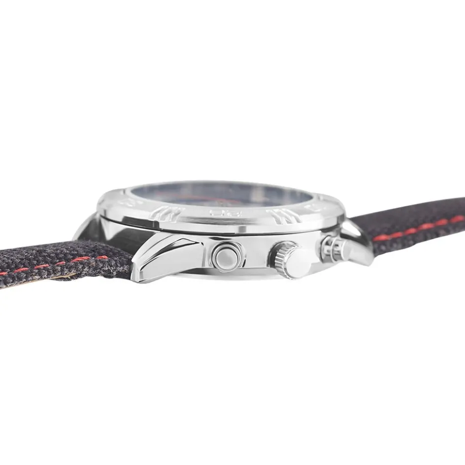 Montre Upp Lucas Alliage Argenté Ronde Quartz 36.5mm Lunette Argentée Fond Noir Bracelet Tissu Noir Et Couture Rouge P100915-b